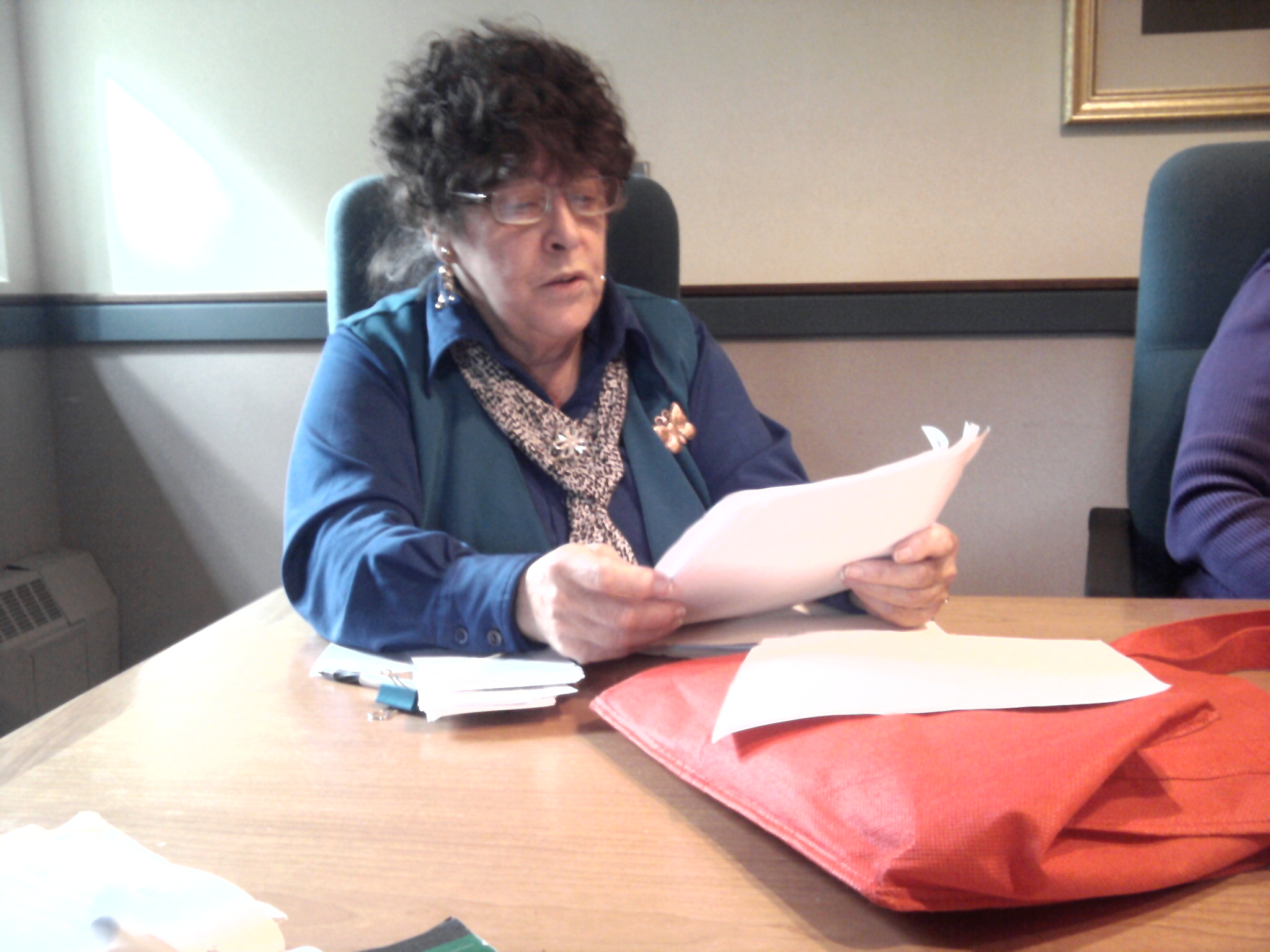 Mass Poetry Society leader Jeanette Maes gives NSPF members an update at a fall 2011 meeting.