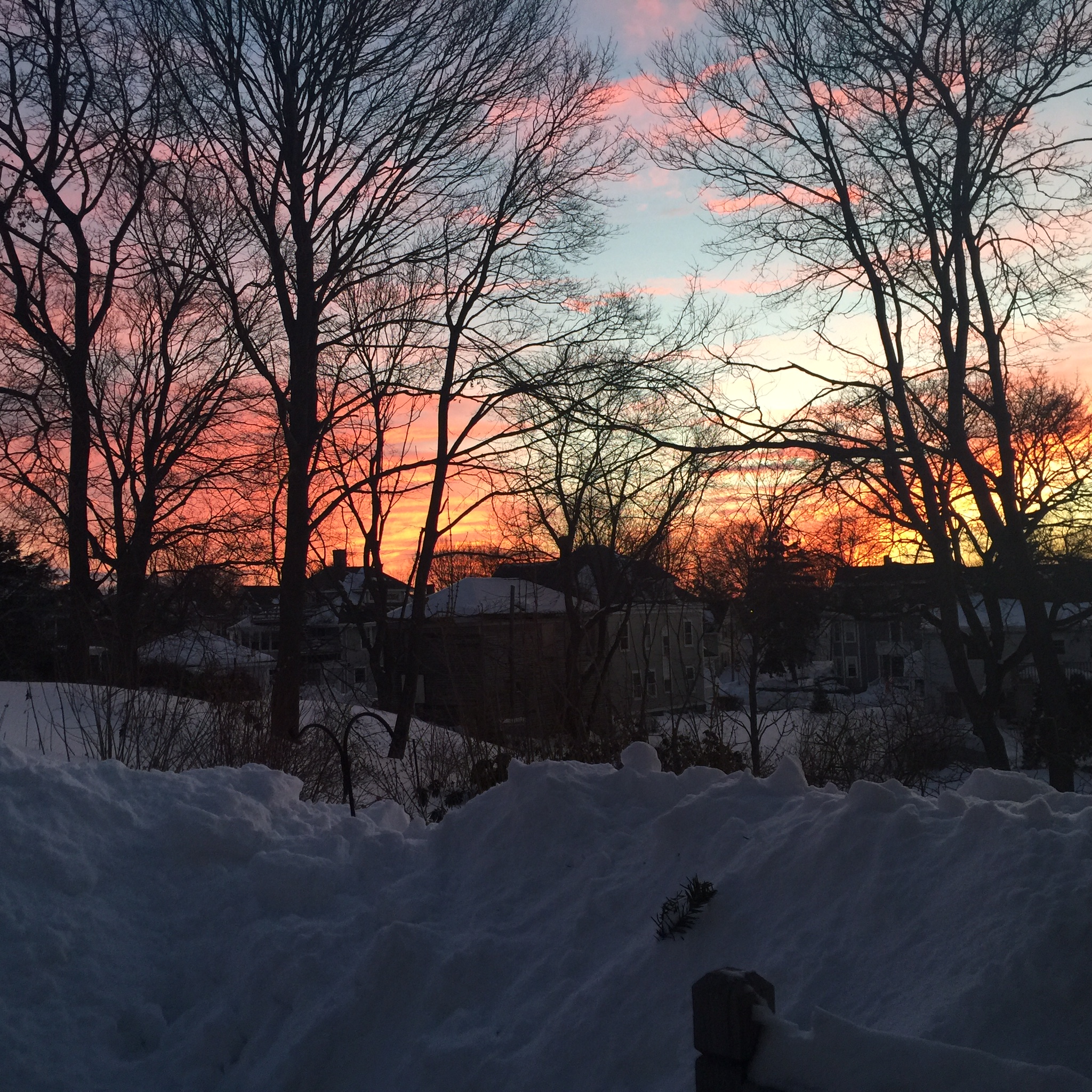 and the snow is piled high all around us;